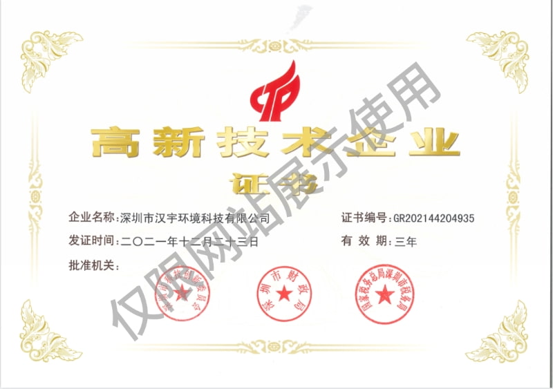 漢宇環境是國家高新技術企業、廣東省環保骨干企業、深圳市專精特新中小企業,秉承“開拓、創新、誠信、高效”經營理念,致力發展成為行業領先的綜合性生態環境技術服務企業,竭誠為廣大客戶提供全方位全過程的技術服務。